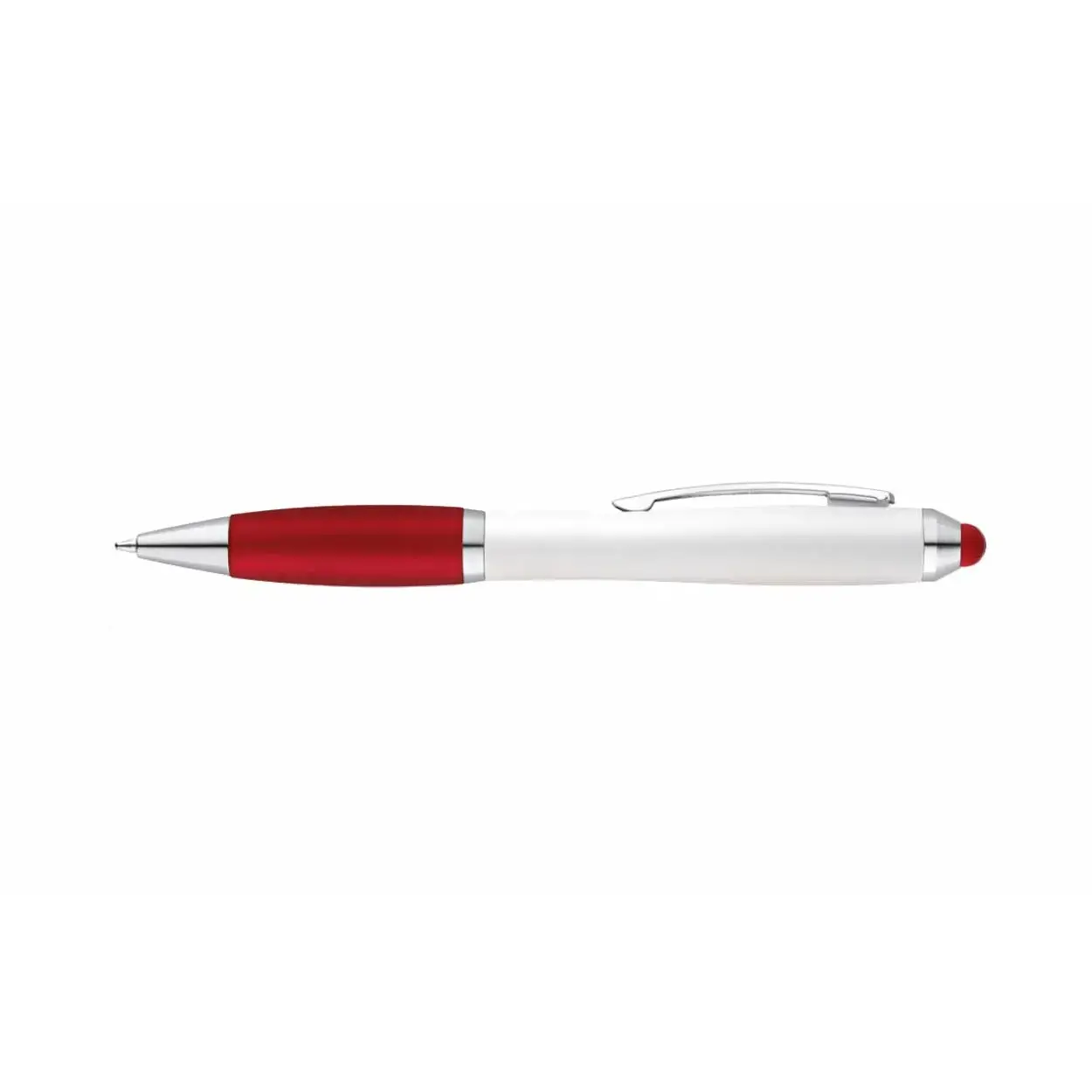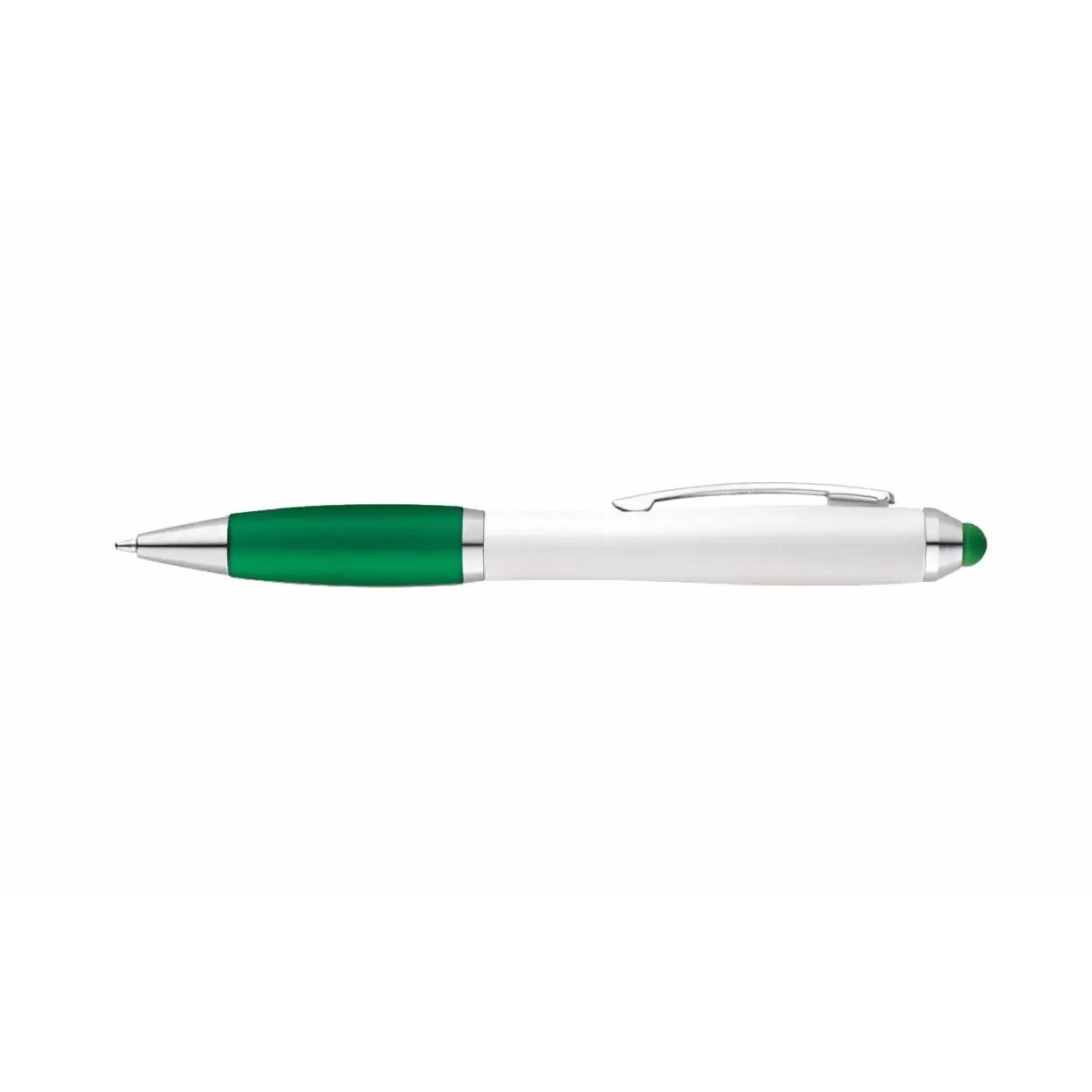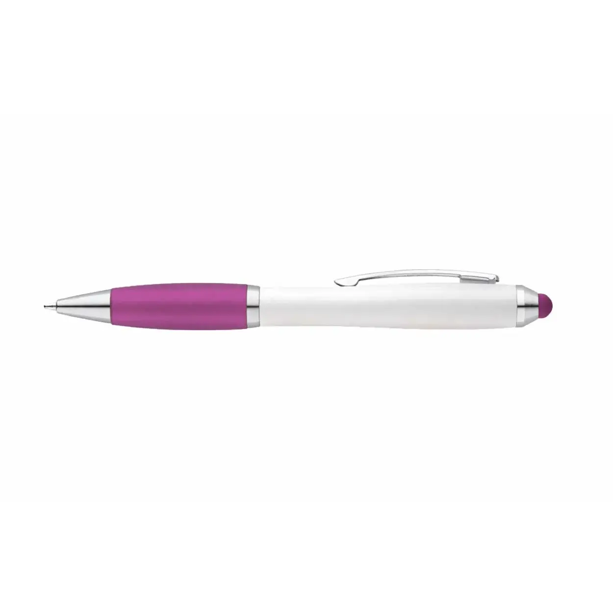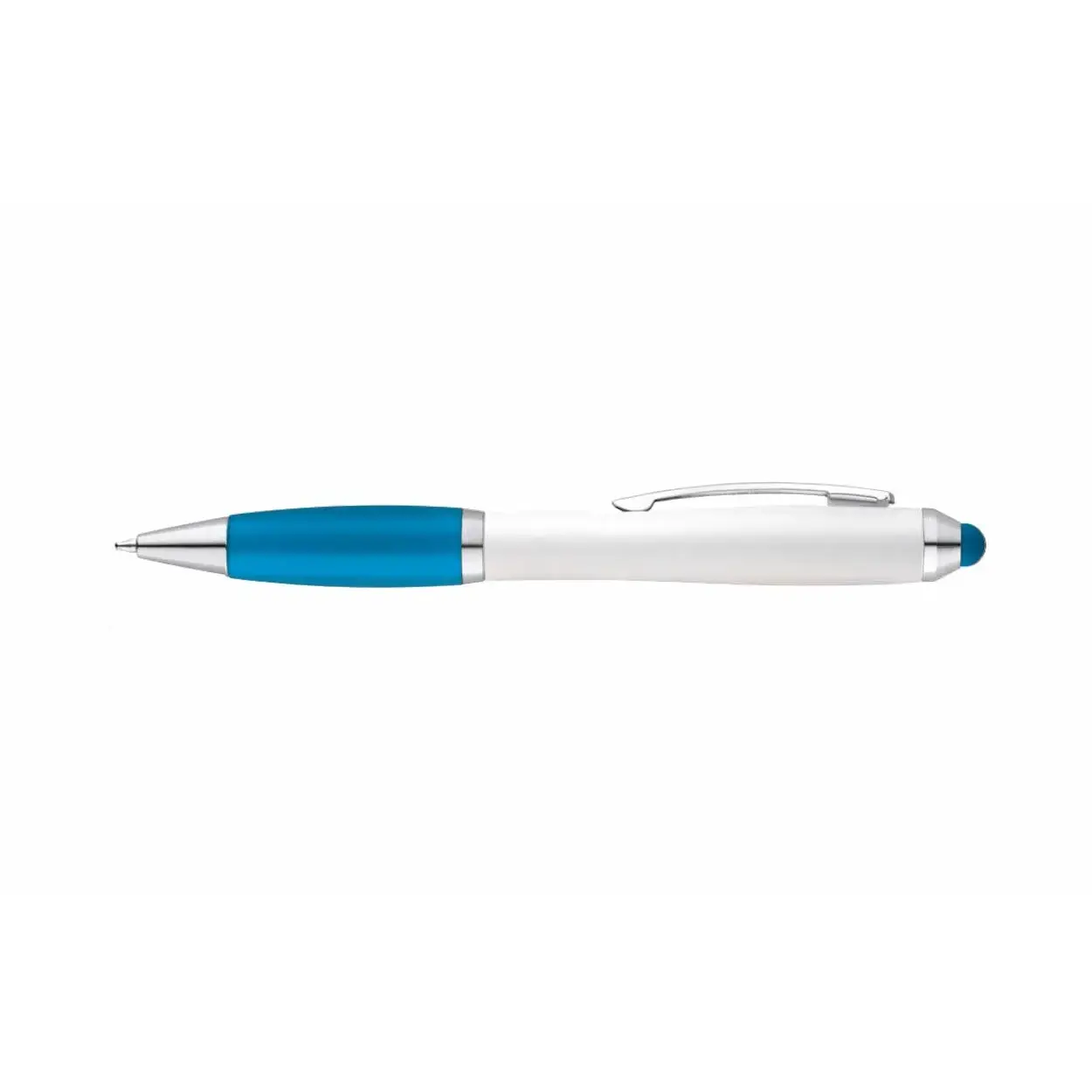 Bolígrafo blanco con clip metálico – Antideslizante de silicona de color – Punta touch de color – Tinta negra.