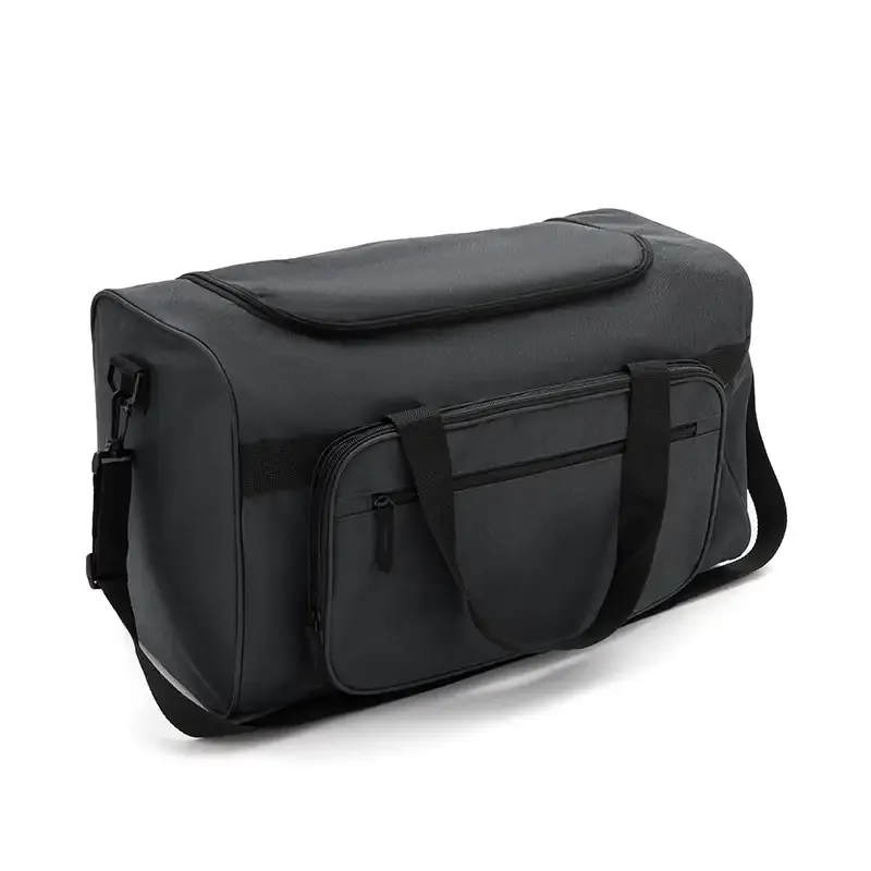 Bolso fabricado en tela de polyester, tiene 3 cierres principales, un compartimento exterior de red y espacios pequeños en el interior. Bolsillo frontal con bolsa para zapatillas o ropa sucia. Dimensiones: 49 x 24 x 22,5 cm. Capacidad: 26L.